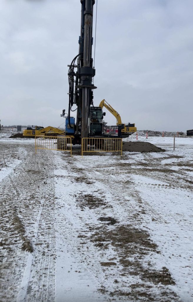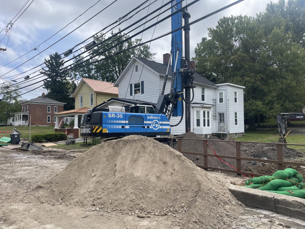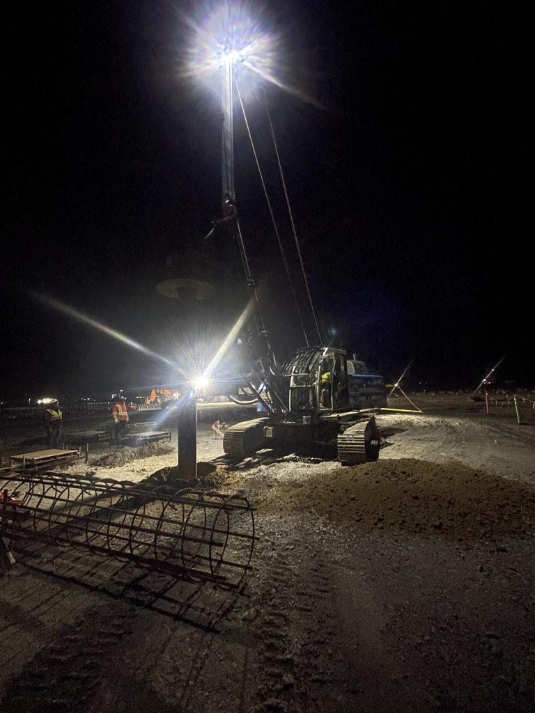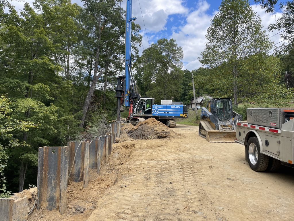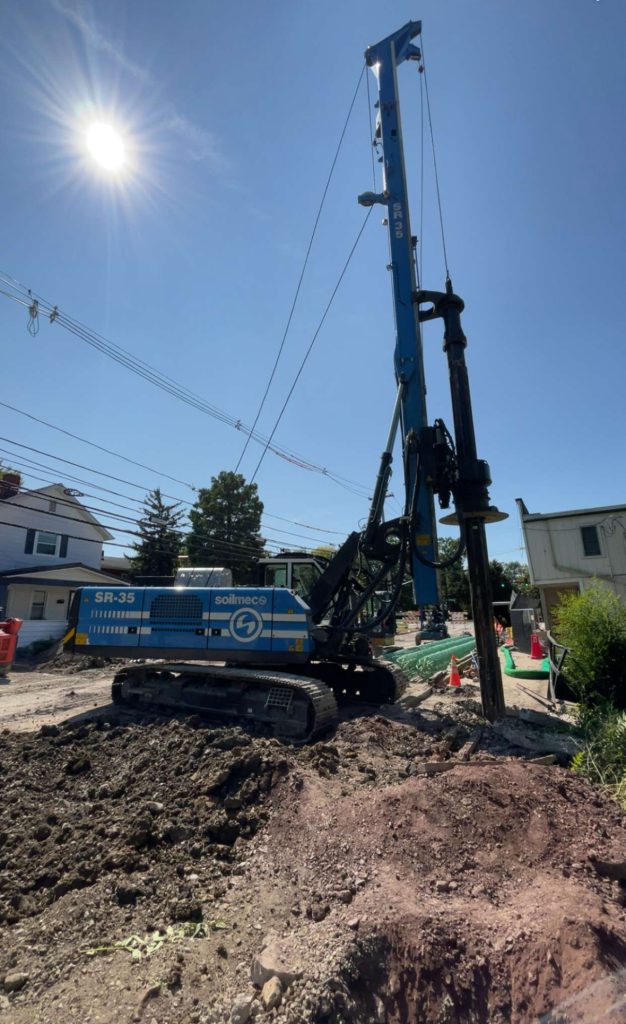 Installation of Temporary Retaining Wall piers along with wing wall foundation shafts.